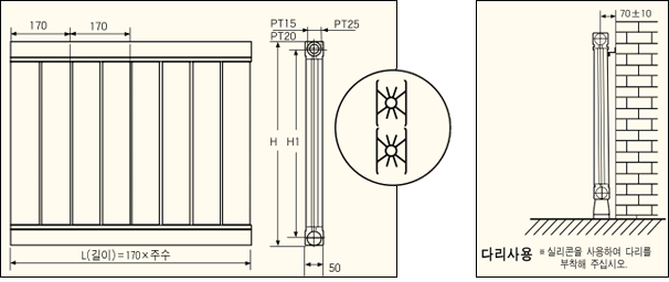 | 주당 길이 170mm 조립후길이 주수*170 (예 10주= 10*170=1700mm) |